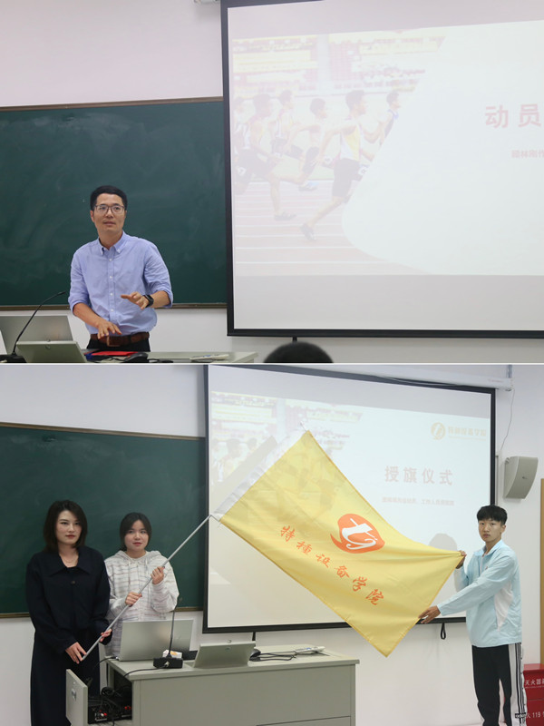 窦飒飒向运动员、工作人员代表授予院旗。全体运动员、工作人员作出征宣誓。大家激情满怀,斗志昂扬,用响亮的誓言表达对运动会的期待。