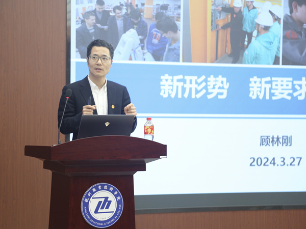 顾林刚为学员作题为“新形势 新要求 新作为”的课程第一讲。他首先介绍了当前学校及学院发展的新形势,从“会学习、会做事、会做人”三个层面对员工干部提出新的要求,最后他希望大家能够展现新担当新作为,鼓励学员们立足员工干部身份勇挑重担。顾林刚的讲授生动风趣、发人深省,现场互动不断,同学们受益匪浅。