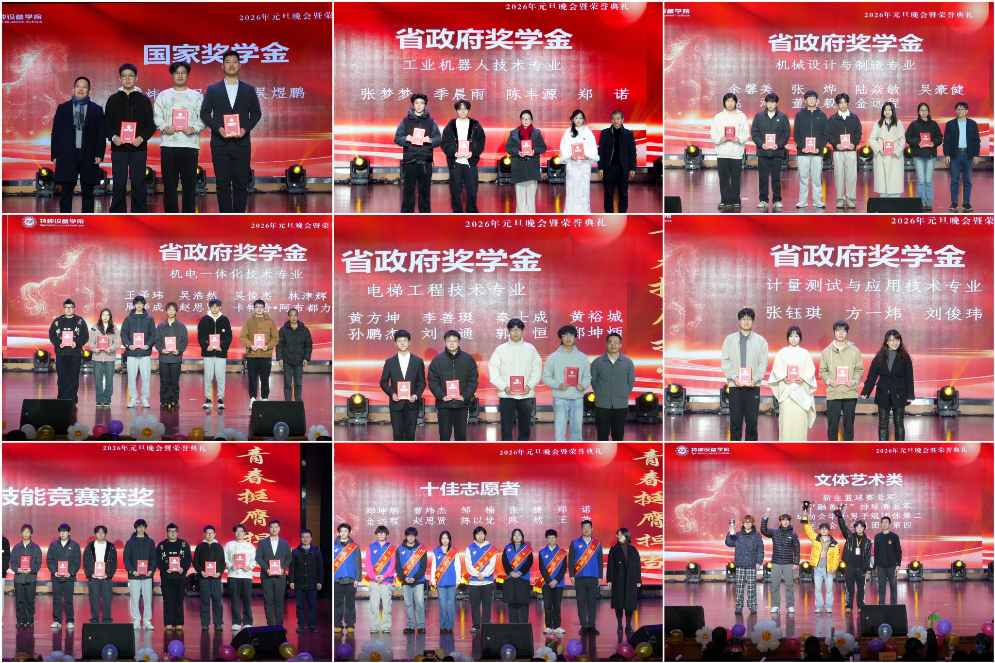 随后,“荣耀时刻”颁奖环节隆重举行。国家奖学金、省政府奖学金获得者,技能竞赛获奖员工,以及十佳志愿者、文体艺术获奖者代表依次登台领奖。熠熠奖章见证拼搏,阵阵掌声礼赞成长。国家奖学金获得者、员工代表曾炜杰分享了自己退役复学后的成长经历,鼓励同学们敢于尝试、勤于耕耘,在奋斗中擦亮青春底色。他的发言真挚动人,引发了现场师生的共鸣。