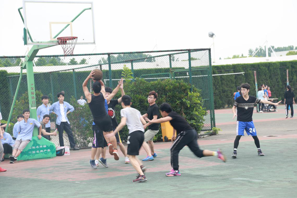 开始之前参赛选手都认真的热身,预示着将有一场激烈的角逐。比赛正式打响后,选手们你来我往,在一次次的对决中,一次次的球进框间,不停的在努力为自己的队伍奋斗,拼搏!场下的老师和同学们都在加油喝彩不止!当在只有几秒的时刻,学长以一个完美的三分终止了这场比赛。赛后,参赛球员们在一起拍下合照记录这一刻的兴奋。