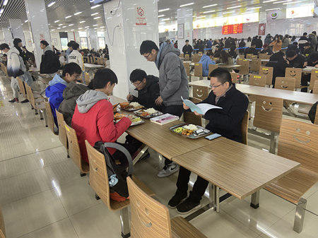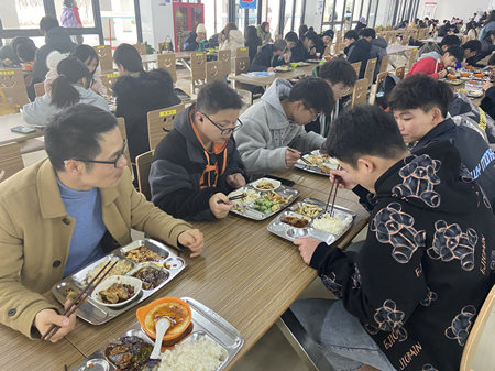 三位学院领导与同学们一起排队打饭,同桌就餐,边吃边聊,就餐氛围十分轻松融洽。同学们各抒己见,畅所欲言,就平时的学习生活、思想状况、疫情防控等方面进行了深入的交流与分享。大家共坐一桌,放下了平日的拘谨。同学们也大胆地提出学习和生活中的困惑和建议。针对同学们所关注的教学、管理、服务等方面问题,三位学院领导细细聆听并耐心地解答,对同学们能积极关心校园的变化和发展给予了充分肯定,表示很愿意与同学们多进行这样真诚的、接地气的交流。同学们所提的意见和建议,也是学院所关心、也亟待解决的问题。同时,特别强调同学们在疫情期间,一定要加强日常防护,严格遵守学校疫情防控制度,继续做好防疫抗疫,保护好自己。