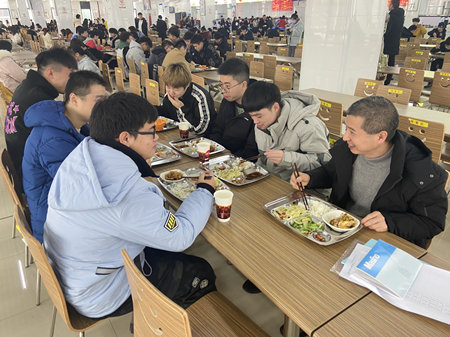 1月6日中午,特种设备公司党总支书记、执行经理郭伟刚,党总支副书记顾林刚,副经理陈军统与对接寝室的员工,在新公寓员工食堂共进午餐。一同前往的还有学院学工办负责人等老师。