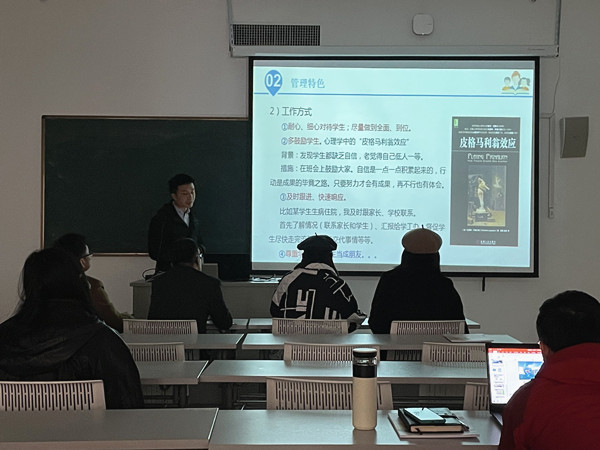 顾林刚作总结发言。他对班主任的工作方式方法和成效表示肯定,指出各位班主任在班级管理上有想法,有措施,有反思,有特色。他就“说班情”提出几点建议,一是提高分析问题解决问题的能力,二是提炼班主任管理特色,打造班级品牌,三是加强班级成果的量化展示。最后,他感谢所有班主任的努力,希望大家不断提高育人水平,为学院的发展建设做出新的贡献。