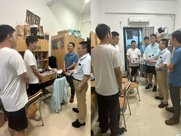 为了加强亚开群演团队建设,及时关心群演同学的生活状况与思想动态,9月20日下午,特种设备公司党总支书记、执行经理郭伟刚,党总支副书记顾林刚以及亚开七班领队老师窦飒飒、林振宇一行,来到锦晖苑员工公寓A1栋对参加亚运开幕式群演工作的特种学子进行走访慰问。